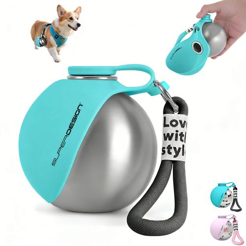 Tiffany Blue 304 Stainless Steel Pet Water Bottle, Foldable Outdoor Portable Travel Drinking Cup for Dogs Cats